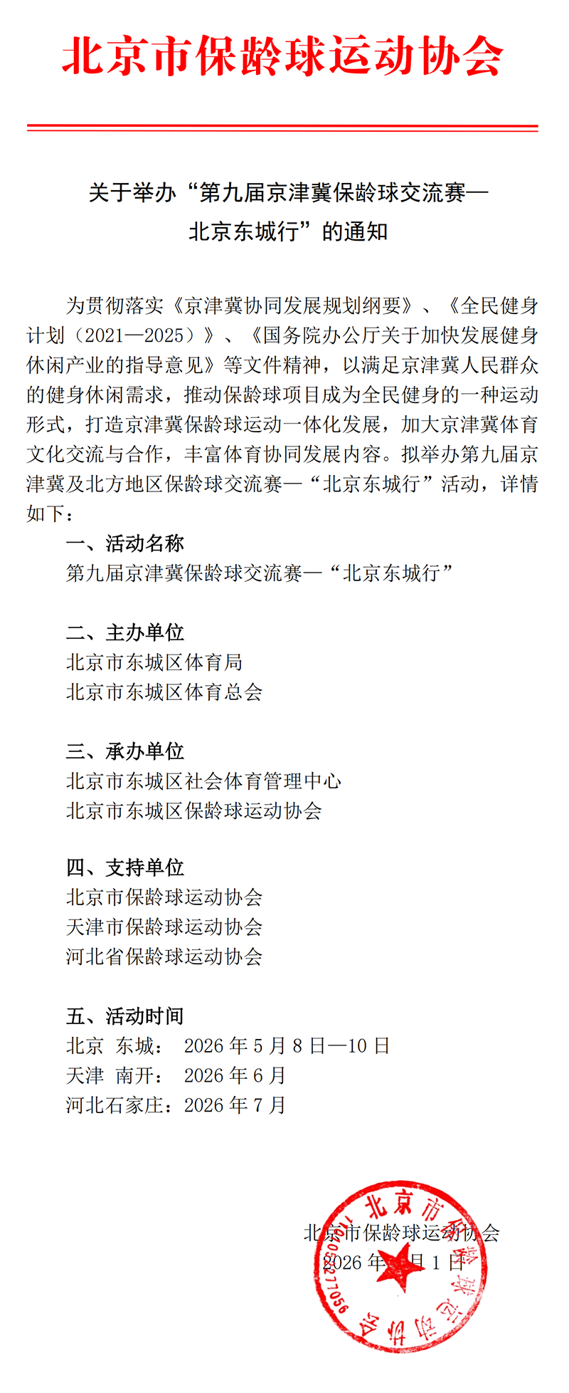 关于举办“第九届京津冀保龄球交流赛——北京东城行”的通知
